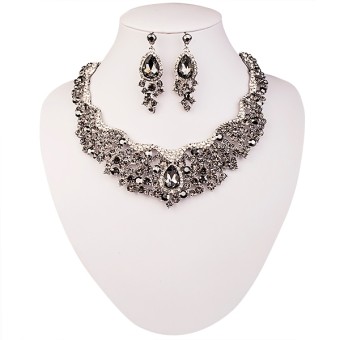 Un SET special de accesorii dedicate evenimentelor unice, bijuterii unicat pentru mireasa cu un design exceptional alcatuite din colier si cercei, placate cu Aur alb de 10k si cristale stralucitoare.