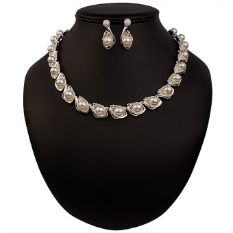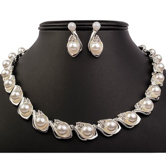 Un SET de bijuterii unicat, dedicate special pentru tine, accesorii unicat pentru mireasa cu un design exceptional alcatuite din colier si cercei, placate cu Aur alb 10k, perle de laborator si cristale stralucitoare.