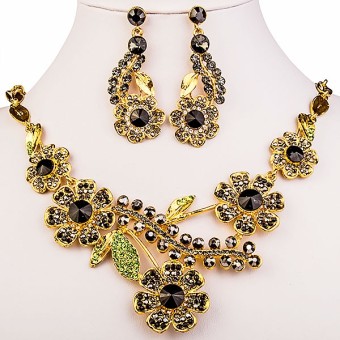 Un SET unic si incantator de accesorii dedicate evenimentelor speciale din viata ta, bijuterii unicat cu un design exceptional alcatuite din colier si cercei, placate cu Aur galben de 18k si cristale stralucitoare.