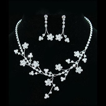 Set de bijuterii fashion pentru mireasa (colier si cercei), bijuterii glamour pentru evenimente deosebite, cu un design de exceptie placate cu Argint 925 si cristale stralucitoare.