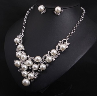 Set de bijuterii mireasa tip fashion (colier si cercei), bijuterii pentru nunta cu un design deosebit placate cu cristale stralucitoare.