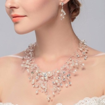 Un set de bijuterii fashion pentru nunta ta (colier si cercei), accesorii unicat pentru mireasa cu un design exceptional placate cu Argint, cristale si perle de laborator.