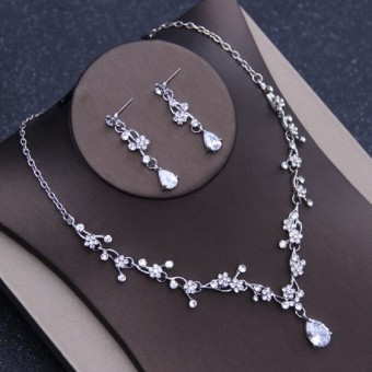 Set de bijuterii nunta (colier si cercei), bijuterii unicat pentru mireasa cu un design de exceptie placate cu Aur alb 14k si pietre semipretioase Zirconiu.