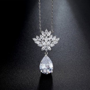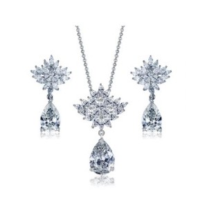 Set de bijuterii unicat pentru mireasa (colier si cercei), bijuterii speciale pentru tine cu un design exceptional placate cu Platina si pietre semipretioase Zirconiu.