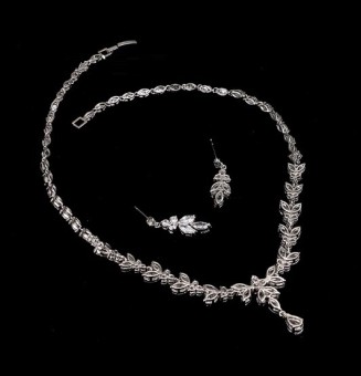 Un set de bijuterii de nunta glamour Safiria (colier si cercei), bijuterii speciale pentru mireasa cu un design modern placate cu Aur alb 18k si pietre semipretioase Zirconiu.