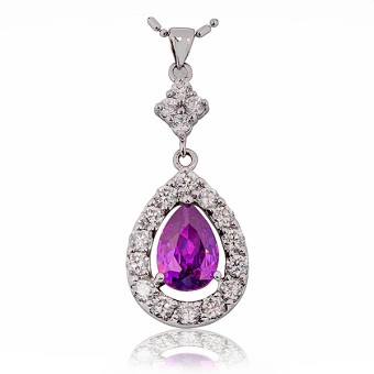 SET bijuterii fashion (cercei, lantisor si pandantiv) cu design deosebit, placate cu Aur alb 18k, cristale de Zirconiu stralucitoare culoare Ametist si cristale austriece.