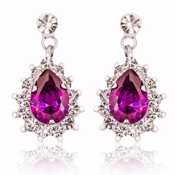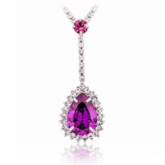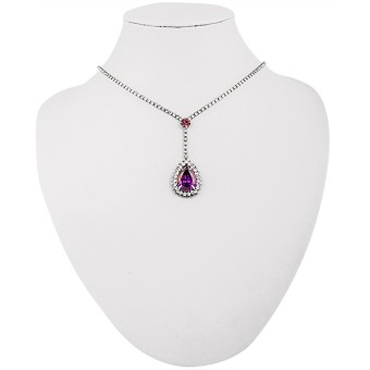 SET bijuterii glamour special (cercei, lantisor si pandantiv) cu design deosebit, placate cu Platina si cristale de Zirconiu stralucitoare, culoare Ametist.