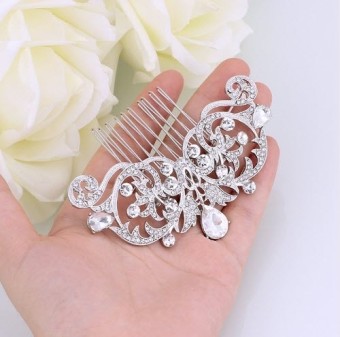 Un accesoriu de nunta important, diadema veritabila pentru mireasa cu un design de exceptie placata cu Aur alb 14k si cristale stralucitoare.