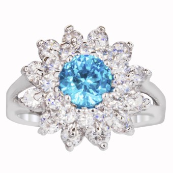 Inel tip logodna sau casatorie, elegant, modern, incantator, placat cu aur alb 18k, piatra semipretioasa Acvamarin (creata in laborator) si cristale austriece stralucitoare.