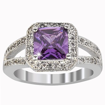 Inel tip logodna sau casatorie, elegant, modern, incantator, placat cu aur alb 18k, piatra semipretioasa Ametist (creata in laborator) si cristale austriece stralucitoare.