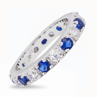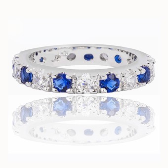 Inel de logodna elegant, placat cu aur alb 14k, pietre semipretioase Safir (create in laborator) si cristale stralucitoare.