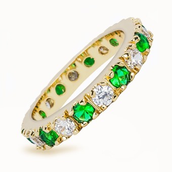 Inel de logodna elegant, placat cu aur galben 14k, pietre semipretioase Smarald (create in laborator) si cristale stralucitoare.