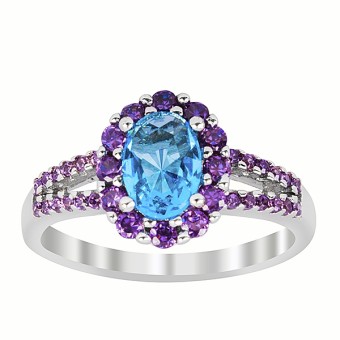 Verigheta veritabila din argint 925, placata cu platina, pietre semipretioase Blue Topaz si Ametist create in laborator, special pentru tine.